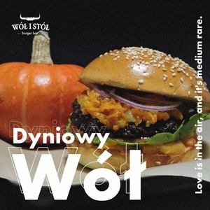 180g wołowiny, chutney z dyni i jabłka z cynamonem, sałata rzymska, pomidor, czerwona cebula, sos musztardowo-miodowy